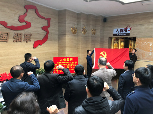 全体党员整齐列队通过部队营区进入馆内,首先在展厅荣誉墙前全体党员面对鲜红的党旗重温了入党誓词。随后在馆内讲解员生动形象的介绍中,支部党员学习了军事后勤基本常识,通过抗日战争、解放战争、抗美援朝几大模块深刻感受到了我党在革命斗争史上各个阶段艰苦卓绝的斗争和取得的令人瞩目的成绩。