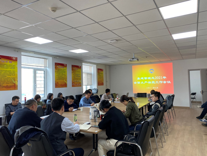 3月31日下午,基建处2021年全面从严治党工作会议在南湖校区矿电楼会议室召开,全处人员参加会议。党支部书记李久存主持会议。