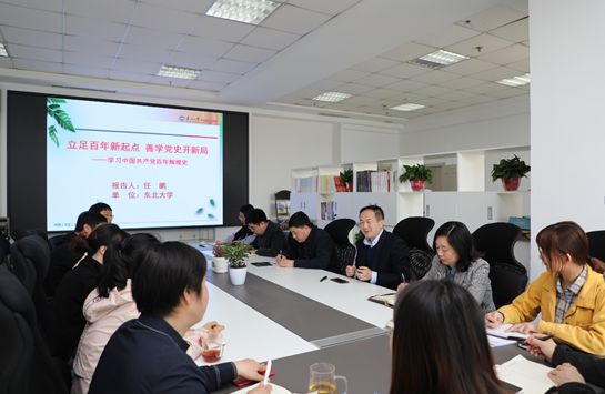 日前,宣传部党支部组织开展党史学习教育专题学习,马克思主义学院副院长任鹏教授应邀讲授了题为“立足百年新起点 善学党史开新局——学习中国共产党百年辉煌史”的党课。