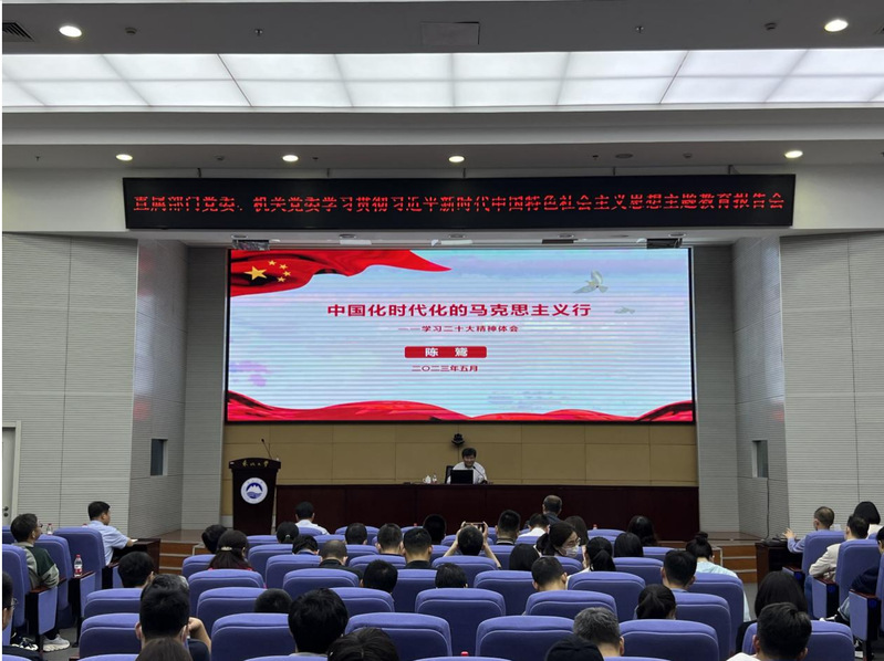 5月19日,机关党委和直属部门党委在主楼822室举行学习贯彻习近平新时代中国特色社会主义思想主题教育专题报告会。机关党委和直属部门党委党员干部代表参加报告会,直属部门党委书记张兴杰主持报告会。