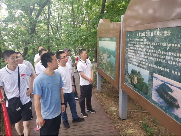 两个党支部成员先后参观了五女山抗联战斗及突围遗址、抗联密营遗址、转移会师地等,重温入党誓词,缅怀抗联英烈。随后参观了东北抗日义勇军纪念馆,聆听百年光辉党史里的红色故事,了解东北人民14年抗战历史史实和艰难历程,接受革命精神的洗礼。全体党员在革命烈士名录墙前,肃立默哀,表达深切的哀思和无尽的怀念。活动最后,全体党员学习了抗日义勇军誓词和军歌成为《义勇军进行曲》歌词主要素材来源,集体肃立歌唱国歌,激越的音符深深烙印在每一位党员心间。