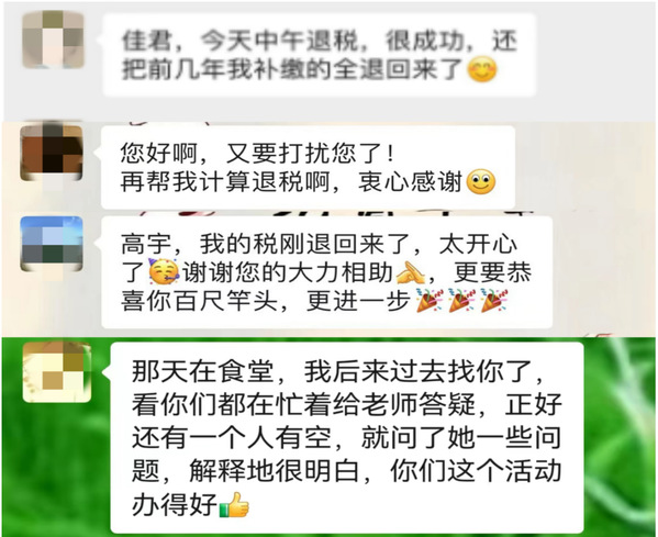 现场活动持续近两个小时,指导百余名教职工完成2023年度个税汇算清缴,协助多名教师申请了退税或补税,还帮助个别老师发现以前年度申报错误,调整申报表,申请了退回误缴税款。此次活动,既帮助教职工避免产生个人所得税《纳税记录》中不良记录,又最大程度保障了师生应享有的利益,受到师生一致好评。