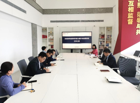 5月6日上午,党办统战部党支部于主楼1401B会议室召开党纪学习教育推进会暨“学研转讲 补钙夯基”学习研讨课堂首次学习活动。会议由党支部书记姜玉原主持。