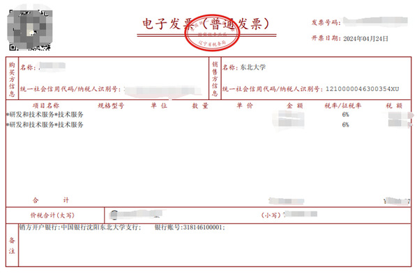 图1 东北大学开具的第一张数电票