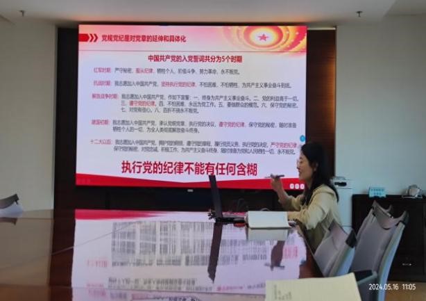 第四阶段为党纪大讲堂阶段。自5月16日起,连续一周每天半小时,由7位科长分享条例学习情况,将《戒尺》中违纪典型案例和国家警示教育片作为“活教材”,用身边事教育身边人,引导党员以案促改、警钟长鸣,打好“勿以恶小而为之”的守纪拳。交流会坚持“一中心、两结合、三避免”总体原则,即以学习《条例》为中心,充分结合岗位职责和日常生活,具体呈现六项纪律的规范要求,避免空话、套话和宏观表述,引导全体同事积极参与交流研讨,并邀请学校纪委副书记、机关党委书记、机关党委委员、支部联系人和相关支部专家莅临指导。
