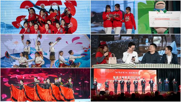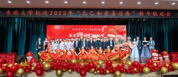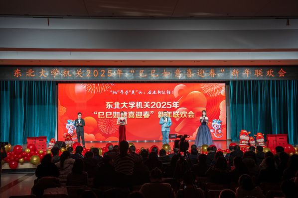 12月26日中午,由校机关党委、机关工会共同主办的“机”昂夺“关”山,奋进新征程东北大学机关2025年“巳巳如意喜迎春”新年联欢会在学生活动中心多功能厅举行。中国银行沈阳分行副行长刘凌冰,中国银行自贸区支行行长银炳少、副行长刘子嫣,校党委书记郭海,党委副书记、纪委书记吴豪伟,党委副书记张皓,副校长王强、王兴伟,党委常委、组织部部长张玉宝,党委常委、党委办公室主任姜玉原,校长助理、校长办公室主任刘延晖以及机关教职工参加联欢会。
